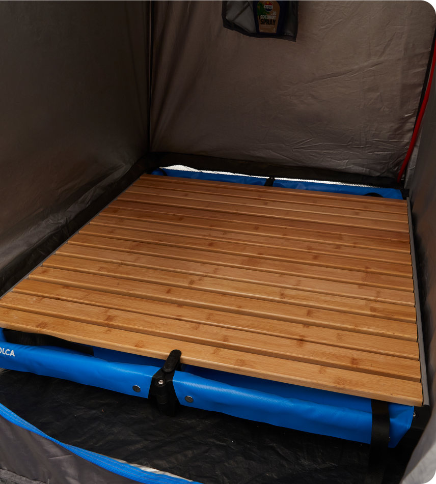 The ENSUITE Shower Base literally takes your camping experience to the next level. Enjoy luxurious hot showers standing on a sturdy bamboo deck. Lead shower run-off away from your camper trailer—or recirculate water for everlasting showers.